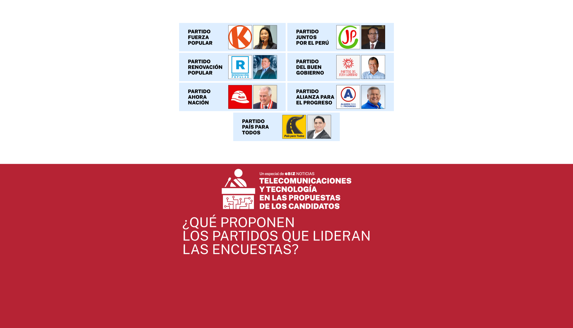 No obstante esta realidad impredecible, consideramos importante revisar qué proponen en materia de tecnología y telecomunicaciones en los planes de gobierno quienes coinciden en los primeros lugares hasta ahora, para tener un panorama claro de qué podría pasar en el sector en el próximo quinquenio.