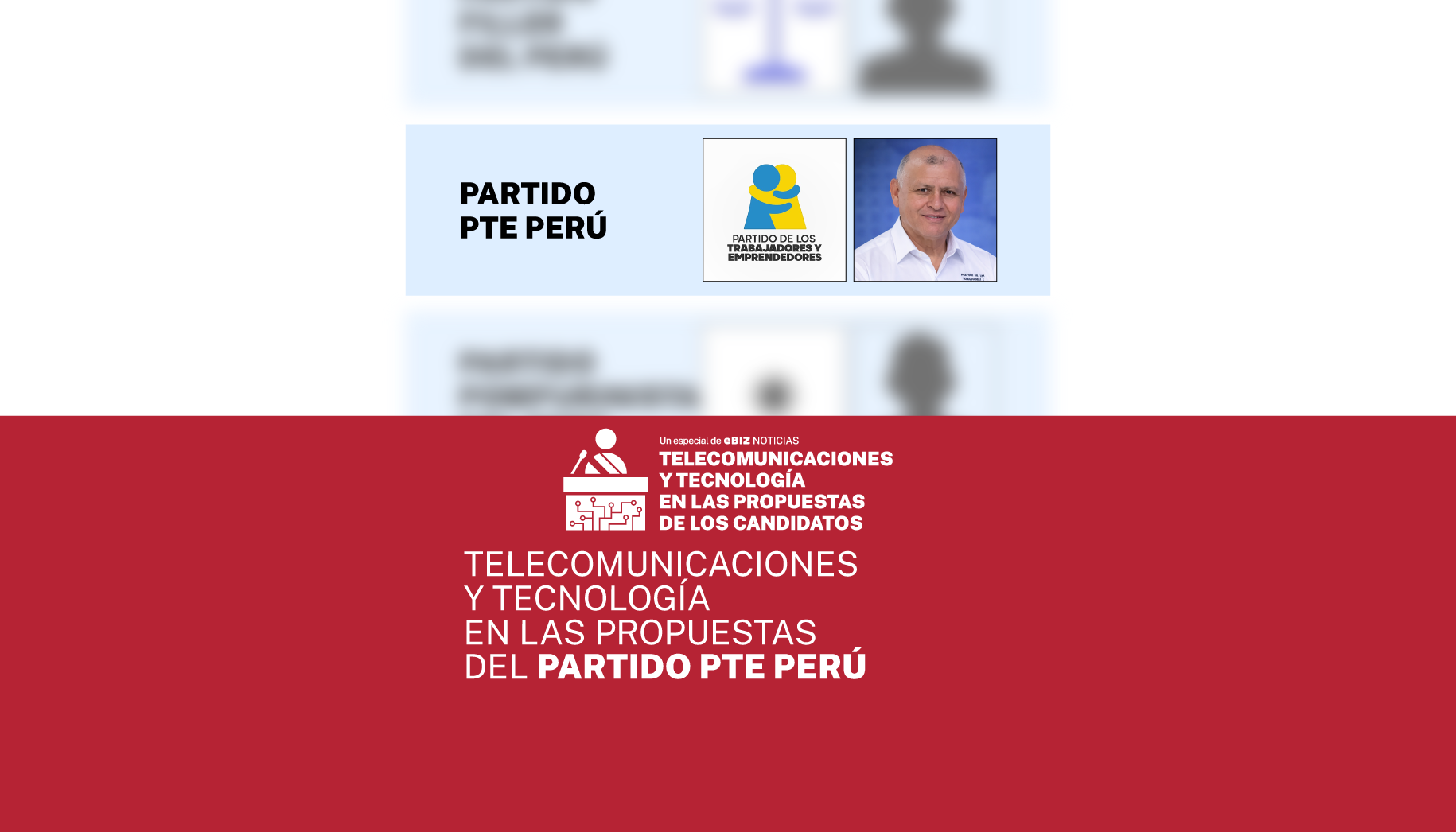 El Partido de los Trabajadores y Emprendedores (PTE Perú) centra su propuesta en impulsar el apoyo financiero y técnico a emprendedores como factor clave para el desarrollo nacional. Plantea alcanzar un millón de emprendedores apoyados durante su Gobierno. No hay otras menciones ligadas a la tecnología o las telecomunicaciones.