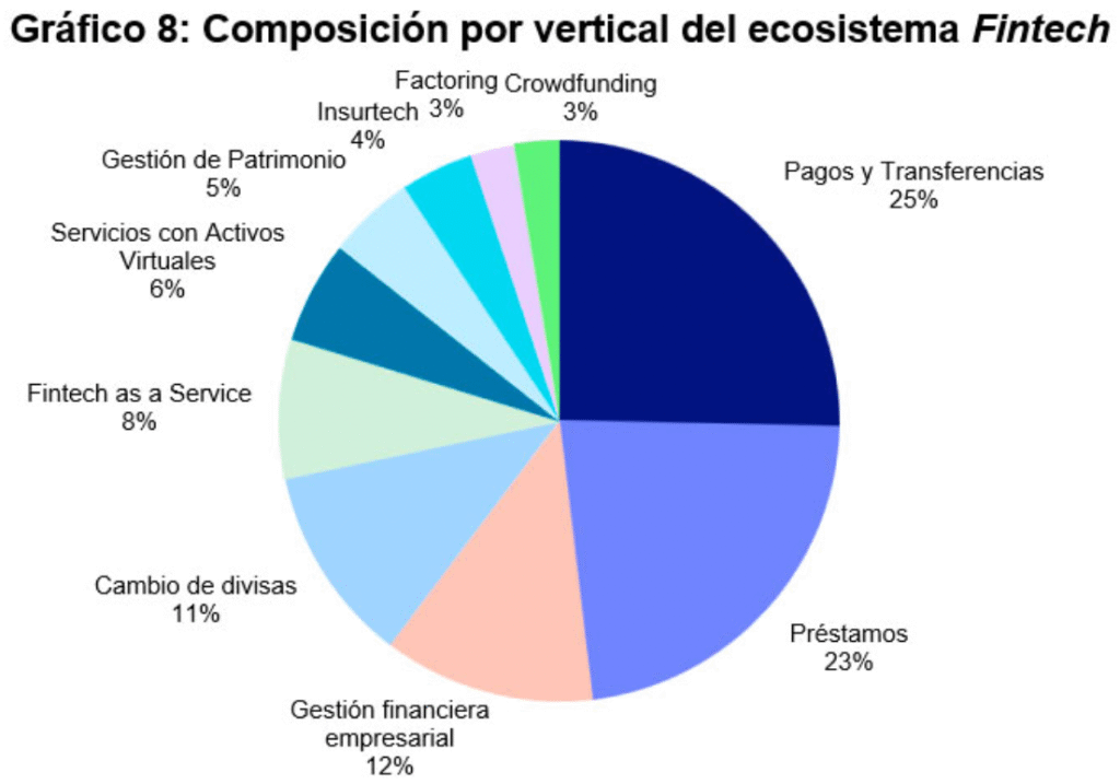 Según el BCRP, de las 237 Fintech que operaban en Perú a diciembre de 2024 (34 más que en 2023), el 25% corresponde al segmento de pagos y transferencias, el 23% opera en el segmento de préstamos, el 12% ofrece servicios de gestión financiera empresarial y el 11% se dedica al cambio de divisas.