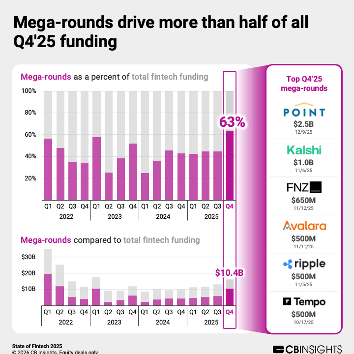 Las criptomonedas, añadieron, se recuperaron y estuvieron entre algunas de las rondas de capital fintech más grandes. Varias de las mayores rondas de captación de capital se destinaron a empresas que operan en activos digitales, infraestructura comercial y servicios financieros basados en criptomonedas, lo que impulsó el tamaño promedio de las transacciones a lo largo de 2025.