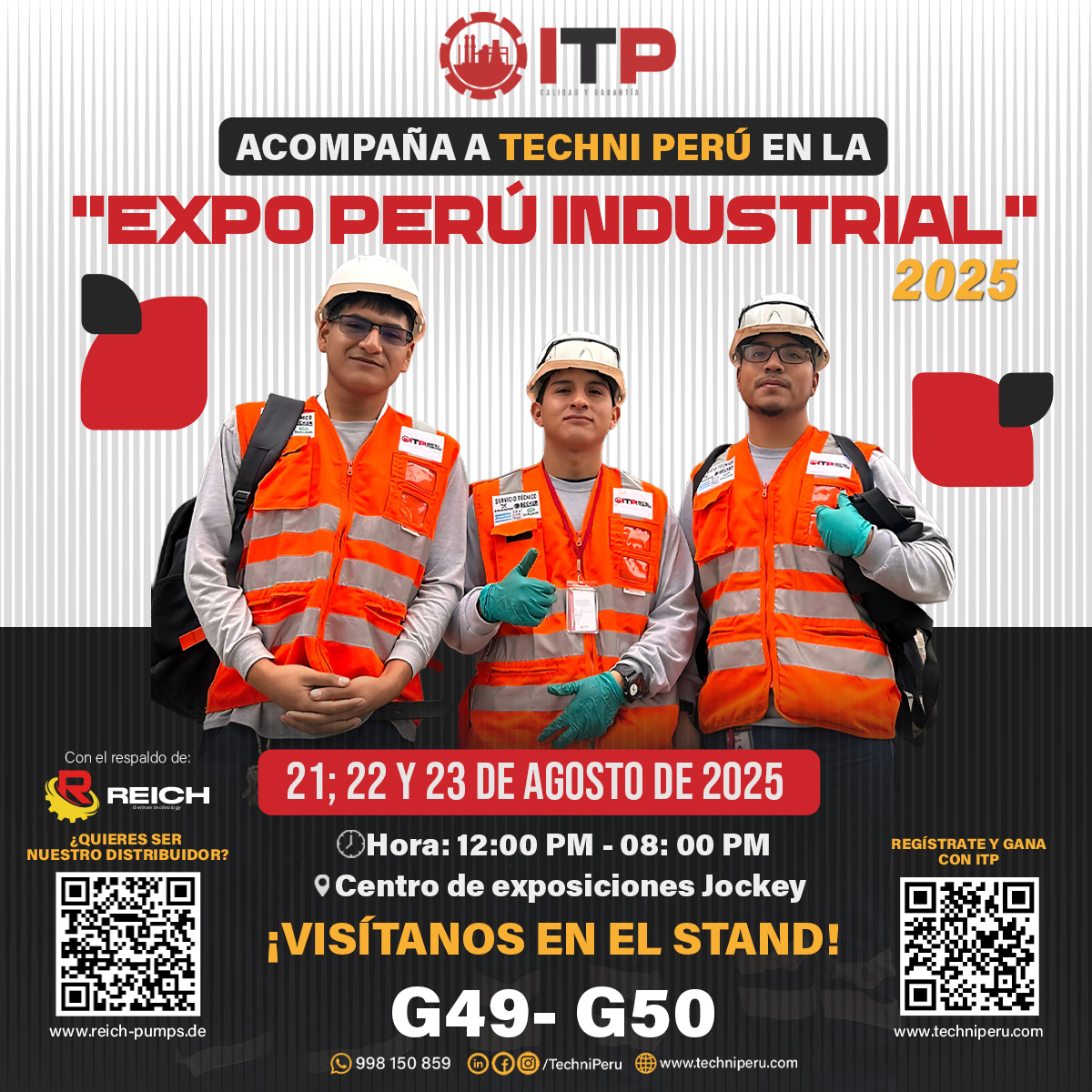 Porque creemos que el futuro se construye con innovación y trabajo conjunto, seguimos avanzando y manteniéndonos a la vanguardia del mundo industrial. Por ello, nos complace anunciar que estaremos presentes en la EXPO PERÚ INDUSTRIAL 2025, los días 21, 22 y 23 de agosto, en el stand G49-50. Será una oportunidad única para conocer nuestras soluciones, compartir experiencias y explorar juntos el camino hacia una industria más eficiente y sostenible.